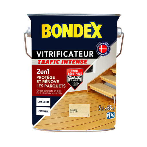 Protège et rénove les parquets et escaliers. Direct parquets et escaliers en bois brut, stratifiés et vitrifiés, neufs ou anciens. Idéal pour les endroits soumis aux passages répétés (escaliers, entrées, couloirs, séjours…).